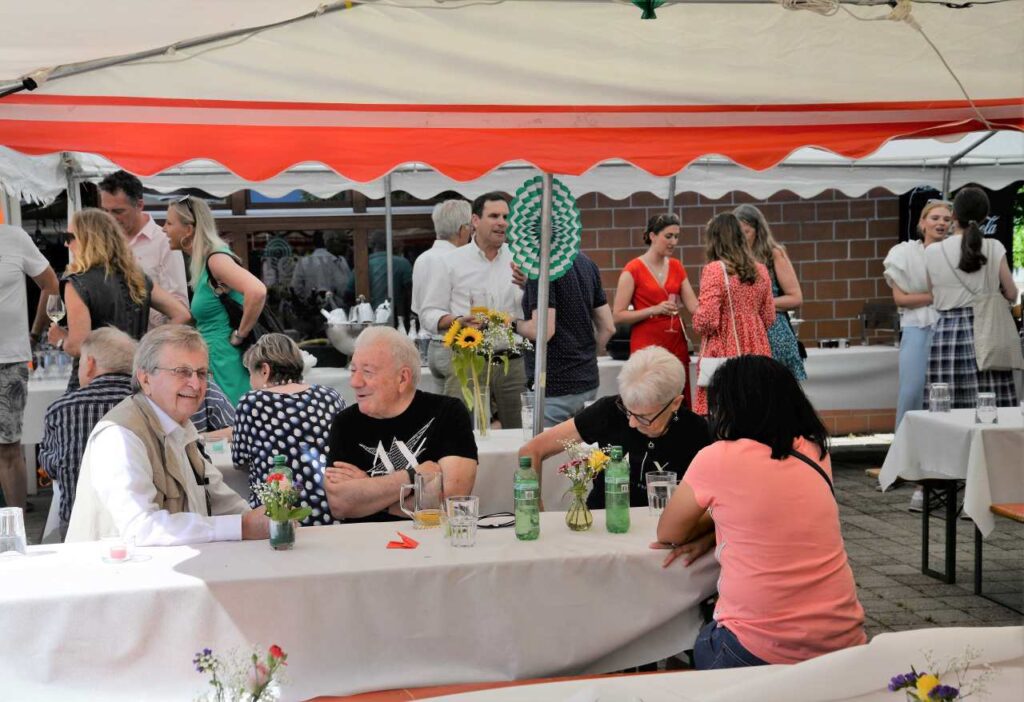 Begleitet von Musik, mehrfach eingespielt auch der Sächsilüüte-Marsch, fanden an den Tischen über Generationen hinweg anregende Gespräche, interessante Begegnungen und zahlreiche Lacher mit Anekdoten statt. Der gelungene Abend bei allerbesten Bedingungen verflog in Windeseile und nach Dessert und Kaffee begab sich die tanzende Truppe auf die Bühne, um bei modernen und klassischen Disco- und Tanzliedern die Beine zu schwingen. Der grosszügig ausgeschenkte Negroni liess die allfällig etwas eingerosteten Glieder wieder geschmeidig werden und so schloss sich mit zunehmender Nachtdunkelheit der sehr gelungene und auch geschätzte Familienanlass in Witikon, im Tennisclub im Hau. Zahlreich die Wortmeldungen, welche eine Wiederholung eines solchen Anlasses in unserem zöiftigen Quartier sehr begrüssen würden.