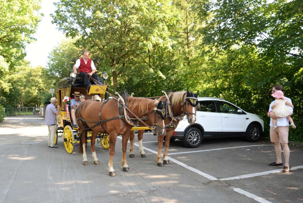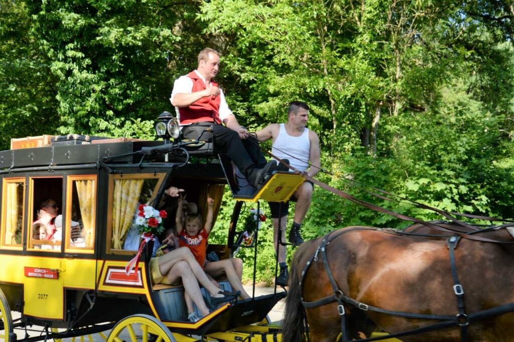 Mit den Kutschenfahrten der historischen Postkutsche, welche den Kurs Maur nach Zürich von 1873 bis 1925 bediente, konnte ein wahrlich seltener, klimagerechter und entschleunigter Leckerbissen geboten werden. Die damaligen Fahrten über Witikon dauerten knapp 90 Minuten und mit 1.65 Franken waren sie für die Zeit auch ausserordentlich teuer. Unsere Rundfahrten während dem Familienfest waren gratis, dauerten deutlich weniger lang und die in der Kutsche noch gefundenen Elefantenguetzli durften behalten werden. Diese wurden, gegen Verzicht auf Einsenden der Zahnarztrechnung,