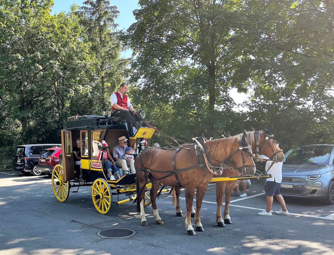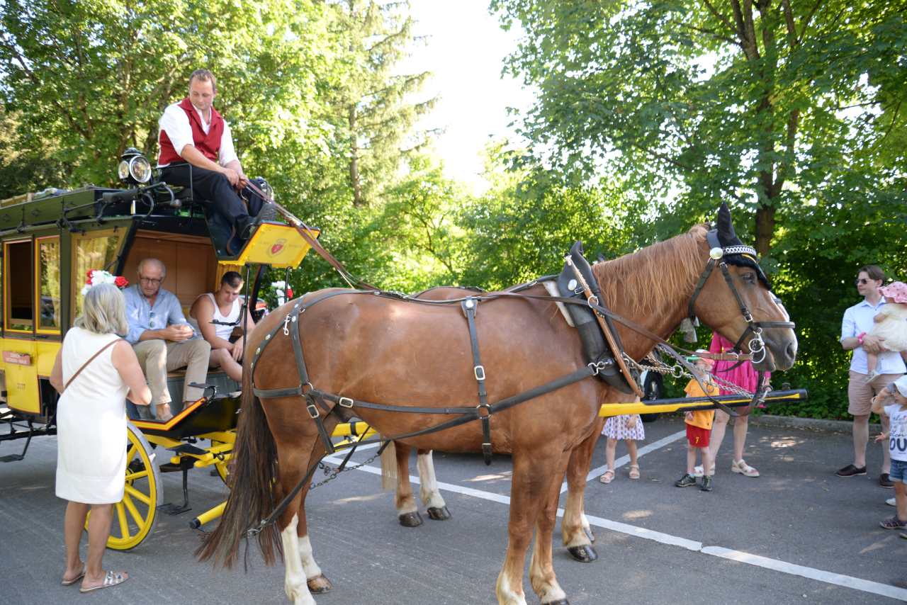 Mit den Kutschenfahrten der historischen Postkutsche, welche den Kurs Maur nach Zürich von 1873 bis 1925 bediente, konnte ein wahrlich seltener, klimagerechter und entschleunigter Leckerbissen geboten werden. Die damaligen Fahrten über Witikon dauerten knapp 90 Minuten und mit 1.65 Franken waren sie für die Zeit auch ausserordentlich teuer. Unsere Rundfahrten während dem Familienfest waren gratis, dauerten deutlich weniger lang und die in der Kutsche noch gefundenen Elefantenguetzli durften behalten werden. Diese wurden, gegen Verzicht auf Einsenden der Zahnarztrechnung,